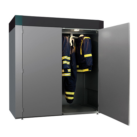 De FDC6 industriële droogcabine biedt een geavanceerde oplossing voor het drogen van beschermende kleding. Dankzij de twee droogsystemen wordt kleding zowel aan de binnenkant als aan de buitenkant gedroogd, wat zorgt voor een snelle en efficiënte droging. De cabine is voorzien van een groot display waarmee het droogproces eenvoudig te volgen en aan te passen is.