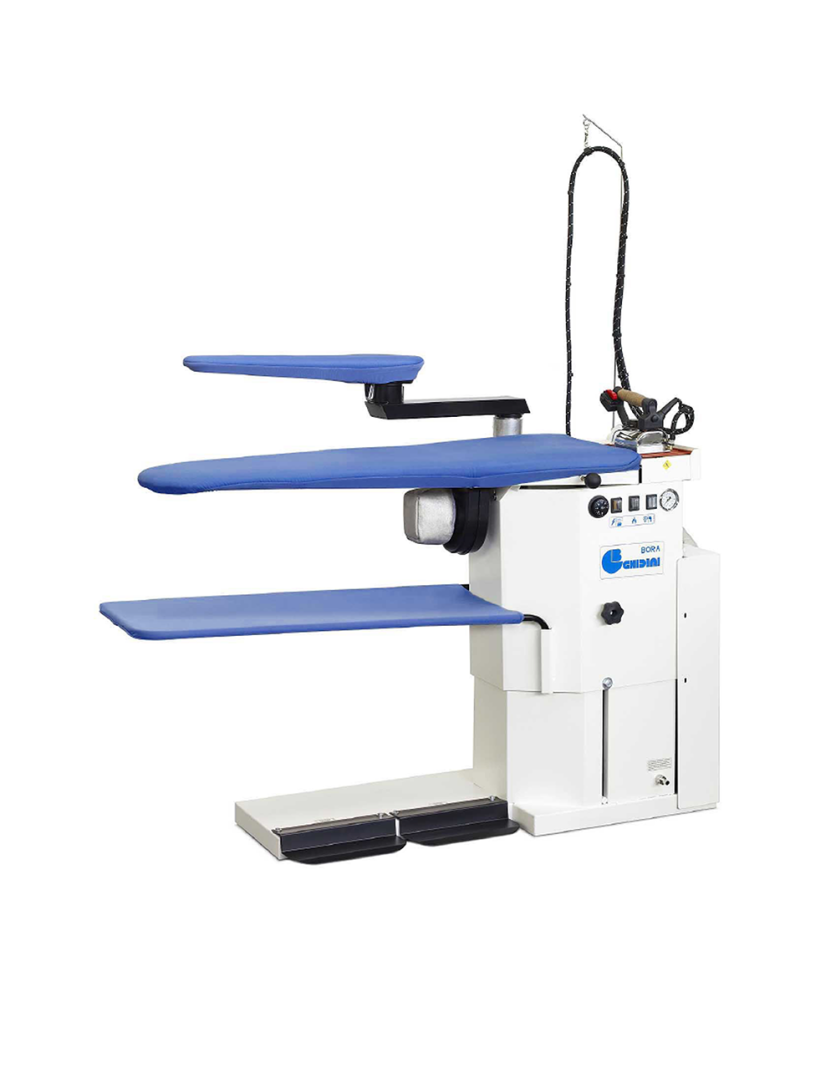 De Ghidini Bora S is ontworpen voor professioneel gebruik in wasserijen, kleermakerijen en textielverzorgingsbedrijven. Het verwarmde strijkvlak voorkomt vochtophoping en versnelt het strijkproces. De geïntegreerde zuig- en blaasfunctie zorgt ervoor dat het textiel strak blijft liggen op de plank en maakt het mogelijk om delicate stoffen moeiteloos te verwerken.